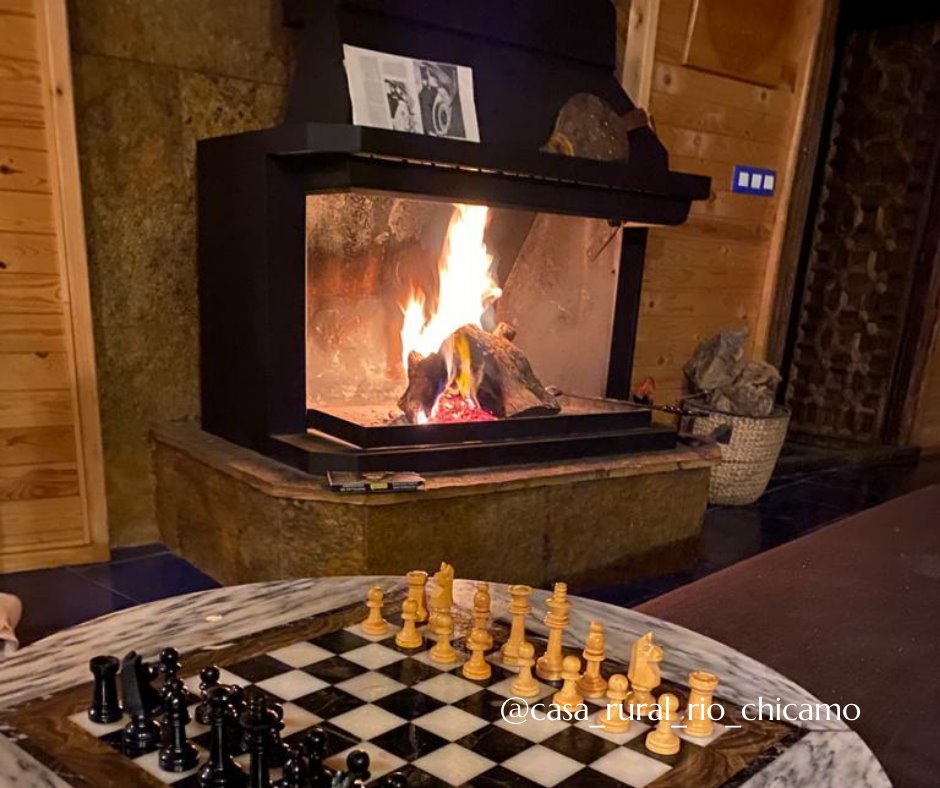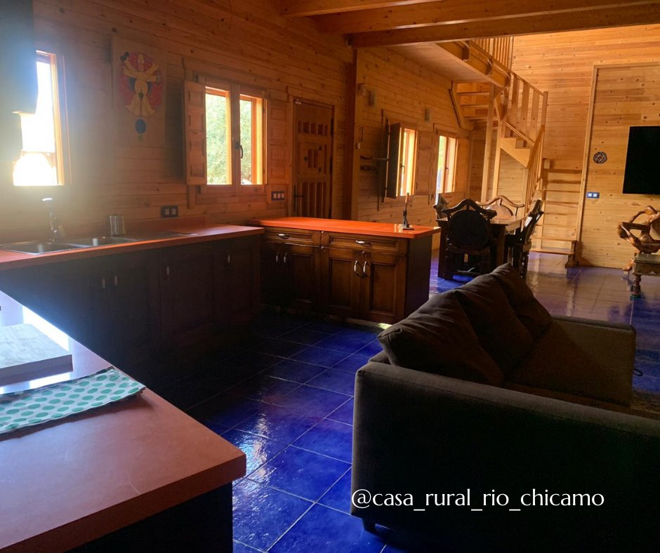 La casa cuenta con un amplisimo salón comedor con cocina diáfana, una chimenea enorme, además de otra más pequeña en su parte cueva. En la planta superior, hay una habitación con cama de matrimonio, baño propio y un balcón con vistas al río.